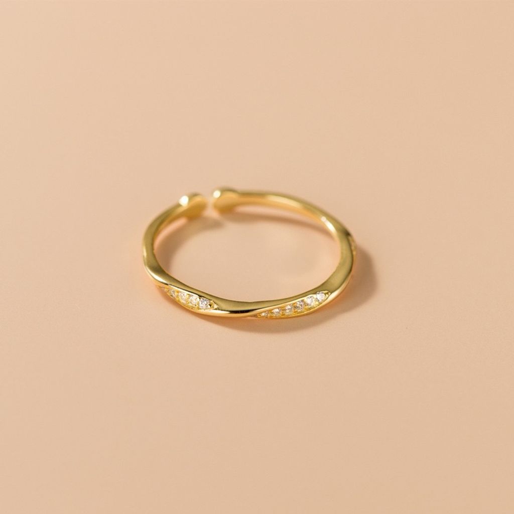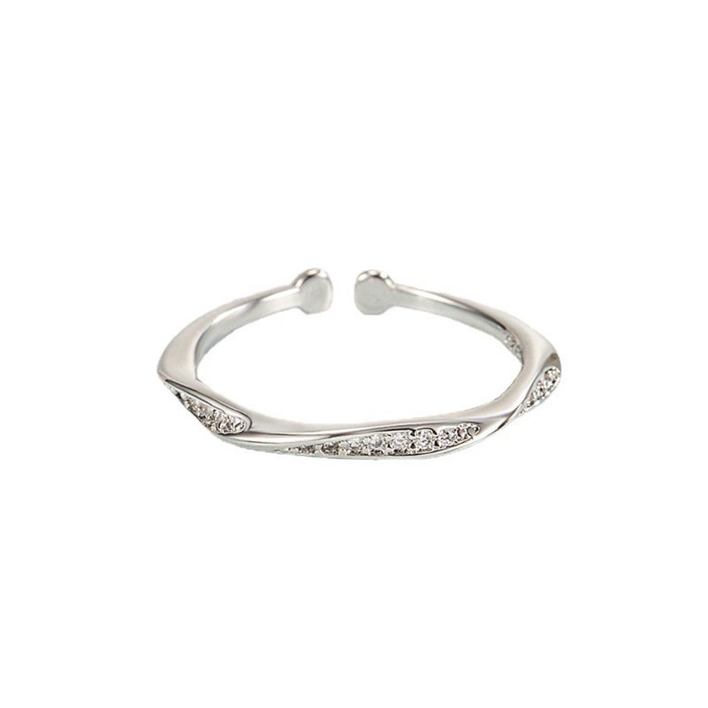 日韓流行時尚戒指 設計款 扭曲線條微鑲鋯石 戒指 開口戒 配件 飾品